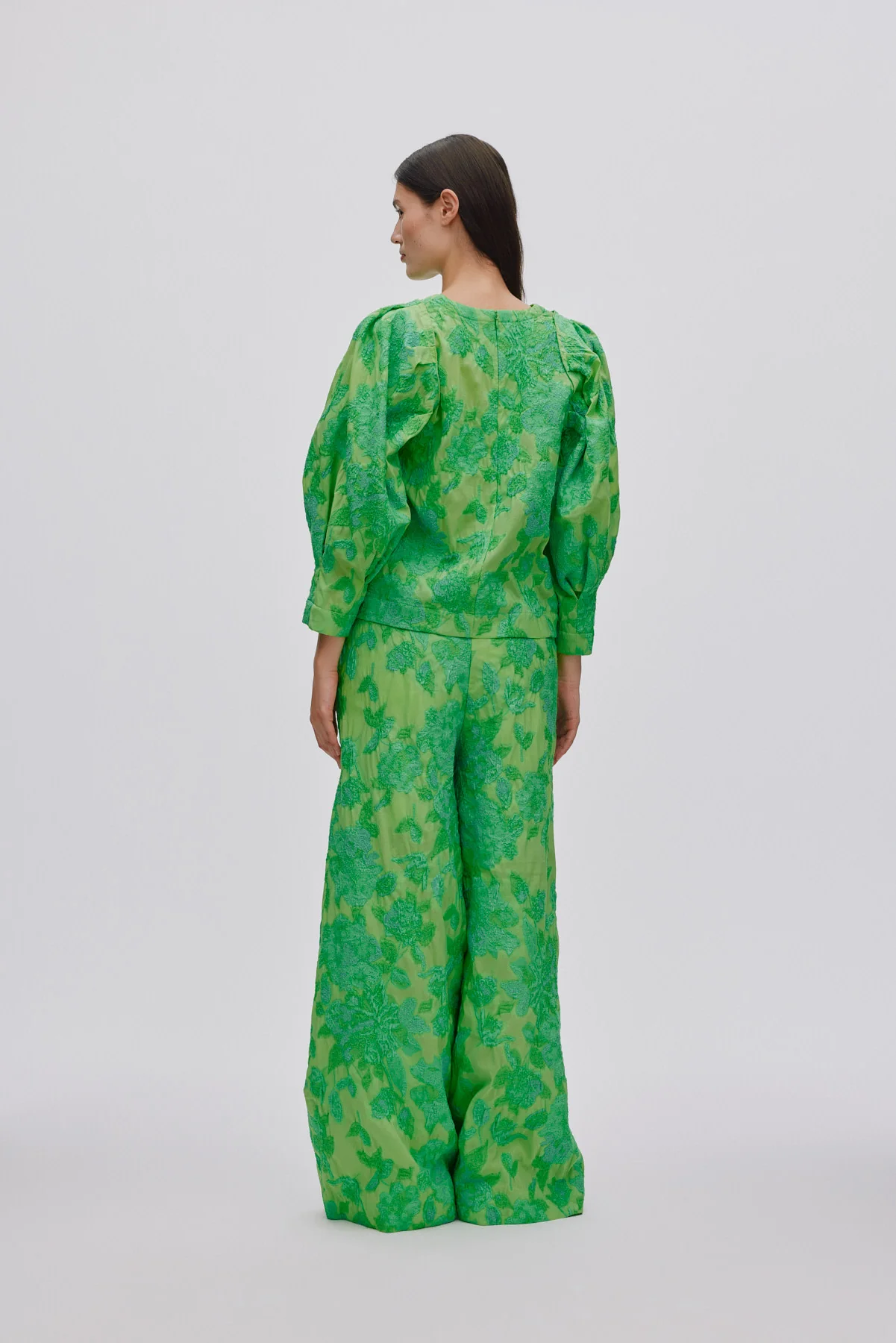Cass - Clipped jacquard wide leg pants I Viper green