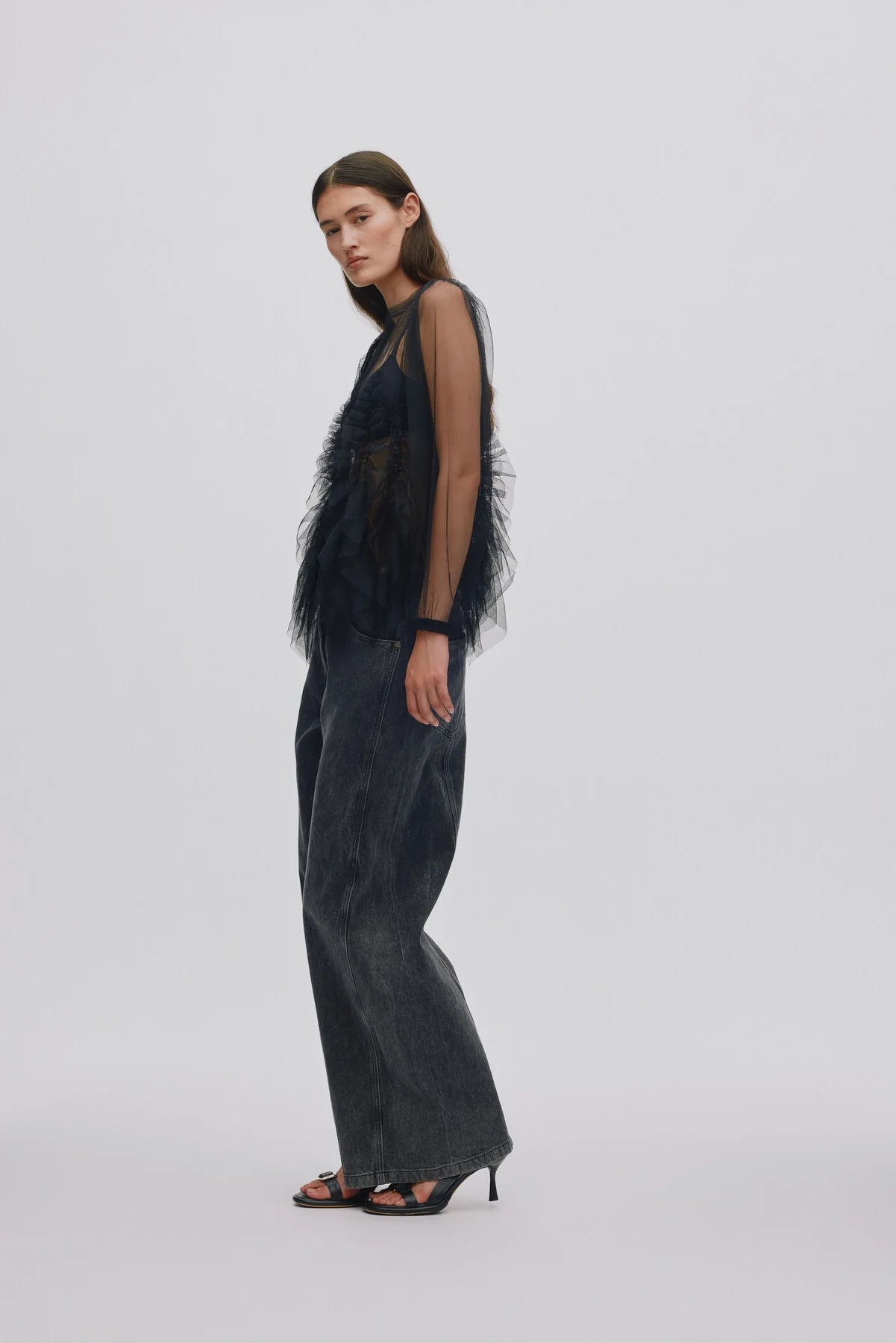Gida - Frilly tulle shirt I Black