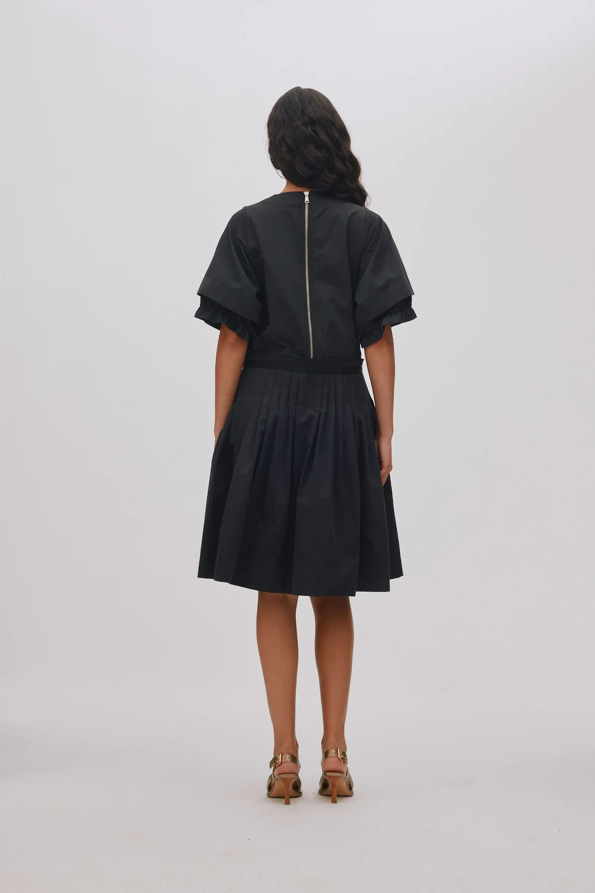 Kjolen er designet med korte ærmer med lidt vidde. Den har fine rynkede detaljer, der giver et feminint og raffineret fald. Bagpå sidder en diskret lynlås, der gør den er enkel at tage af og på. Foran samt på ærmerne er den detaljeret med diskrete justerbare snore, der gør det muligt at tilpasse pasformen efter ønske.