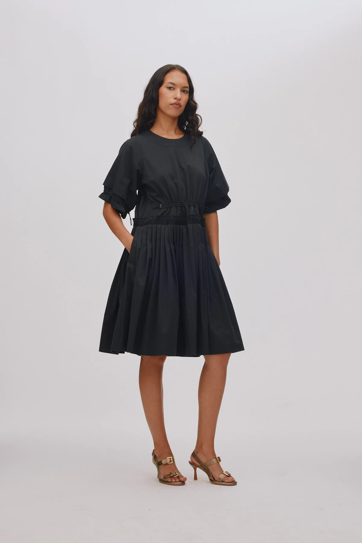 Kjolen er designet med korte ærmer med lidt vidde. Den har fine rynkede detaljer, der giver et feminint og raffineret fald. Bagpå sidder en diskret lynlås, der gør den er enkel at tage af og på. Foran samt på ærmerne er den detaljeret med diskrete justerbare snore, der gør det muligt at tilpasse pasformen efter ønske.